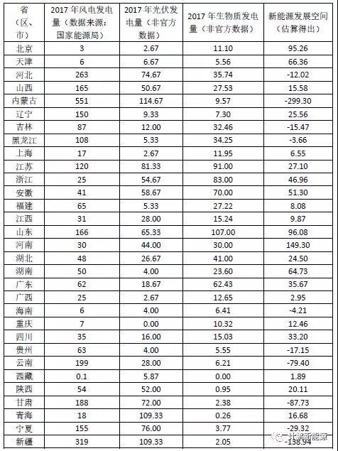 根據(jù)國家能源局公布的2017年風電、光伏并網(wǎng)運行情況以及生物質發(fā)電統(tǒng)計情況,可大致計算該地區(qū)新能源發(fā)電量。
