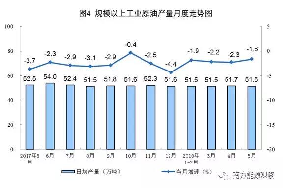 5月份,規(guī)模以上工業(yè)原煤、原油、天然氣生產(chǎn)基本平穩(wěn),原油加工量增速有所放緩,電力生產(chǎn)繼續(xù)加快。
