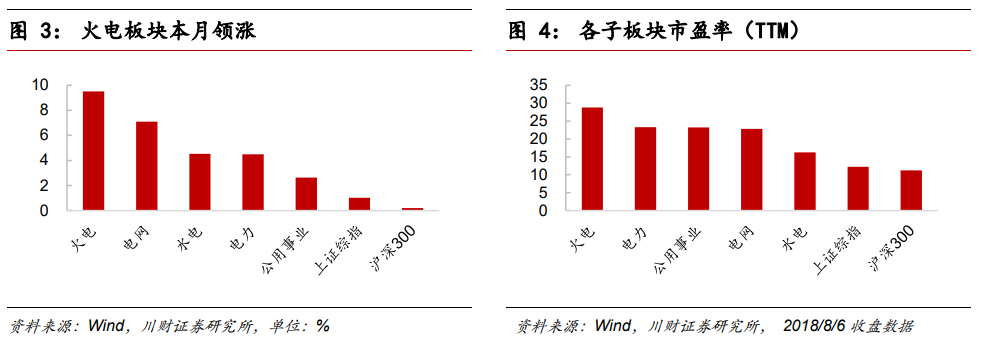 6 月份,全社會(huì)用電量同比增長(zhǎng) 8.0%,增速同比提高 1.5 個(gè)百分點(diǎn);今年上半年全社會(huì)用電量同比增長(zhǎng) 9.4%,增速同比提高了 3.1 個(gè)百分點(diǎn),用電量維持較快增長(zhǎng)。上半年,6,000 千瓦以上電廠發(fā)電設(shè)備容量同比增長(zhǎng) 6.2%,增速較上年同期下降 0.7 個(gè)百分點(diǎn),繼續(xù)保持放緩的趨勢(shì)。受益于行業(yè)景氣度提升,上半年發(fā)電設(shè)備平均利用小時(shí)數(shù)同比增加 69 小時(shí)。國(guó)家發(fā)改委、國(guó)家能源局近期聯(lián)合發(fā)文,要求加快推進(jìn)電力市場(chǎng)化交易,建立市場(chǎng)化價(jià)格形成機(jī)制。電力市場(chǎng)化交易規(guī)模將繼續(xù)擴(kuò)大,行業(yè)優(yōu)勝劣汰或?qū)⒓涌?,行業(yè)集中度有望提升?;痣姺矫妫l(fā)電量增長(zhǎng)較快,市場(chǎng)化交易價(jià)差逐漸縮窄,煤炭?jī)r(jià)格逐漸回歸綠色區(qū)間,火電企業(yè)業(yè)績(jī)有望繼續(xù)改善,可關(guān)注優(yōu)質(zhì)火電企業(yè),相關(guān)標(biāo)的有華能國(guó)際、華電國(guó)際、皖能電力、粵電力 A。水電方面,增值稅優(yōu)惠政策取消或?qū)⒂绊懫髽I(yè)盈利,但下半年來(lái)水情況預(yù)計(jì)偏豐,水電企業(yè)業(yè)績(jī)有望穩(wěn)中有升,可關(guān)注高股息率的長(zhǎng)江電力以及“水火互補(bǔ)”的國(guó)投電力。核電方面,第三代機(jī)組建設(shè)進(jìn)展順利,臺(tái)山、三門核電機(jī)組已實(shí)現(xiàn)首次并網(wǎng),預(yù)計(jì)年內(nèi)將實(shí)現(xiàn)商運(yùn),第三代核電技術(shù)有望獲得驗(yàn)證。在嚴(yán)控煤電裝機(jī)和水電裝機(jī)增速放緩的前提下,第三代核電技術(shù)的落地將有力地推動(dòng)新項(xiàng)目審批重啟,可關(guān)注中國(guó)核電。