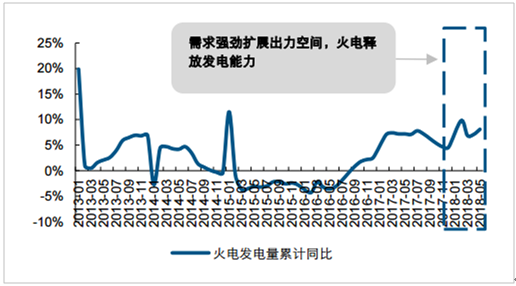 2018年1-5月火電發(fā)電量累計同比增長8.1%