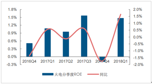 2018年一季度火電板塊(中信)ROE同比上升1.65個百分點