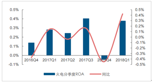 2018年一季度火電板塊(中信)ROA同比上升0.42個百分點
