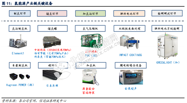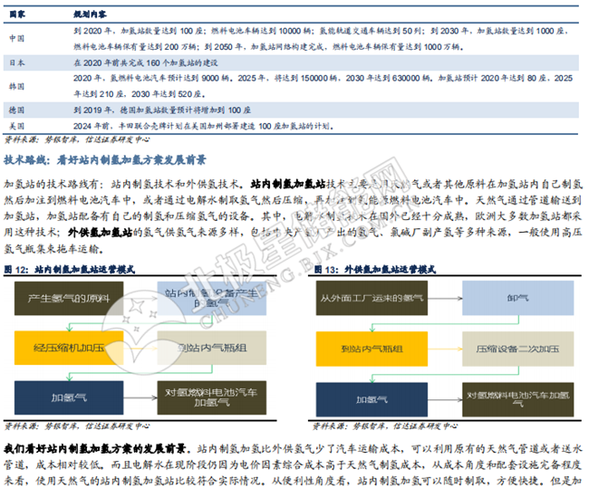 氫能源產(chǎn)業(yè)鏈:日益完善,整裝待發(fā)。氫能源產(chǎn)業(yè)鏈包括上游制氫產(chǎn)氫、氫氣儲存運(yùn)輸、加 氫站運(yùn)營、中游燃料電池系統(tǒng)及零部件生產(chǎn)制造、下游氫燃料電池應(yīng)用等眾多環(huán)節(jié)。同時, 圍繞氫氣展開的主產(chǎn)業(yè)鏈條需要大量高技術(shù)含量機(jī)械設(shè)備支持,主要集中在制氫和壓縮領(lǐng)域。我們認(rèn)為,制氫路徑會按照制氫地的資源稟賦不同而有所變化,儲氫環(huán)節(jié)主要還是氣態(tài)儲氫,但合金儲氫前景較好,加氫站環(huán)節(jié)會呈現(xiàn)中央制氫與分布式制氫共存互補(bǔ)的格局,燃料電池環(huán)節(jié)的機(jī)會在于質(zhì)子交換膜、低成本催化劑以及儲氫瓶,下游應(yīng)用環(huán)節(jié)中汽車市場最大,汽車應(yīng)用市場中,我們預(yù)計(jì)氫燃料電池商用車市場最先爆發(fā)。
