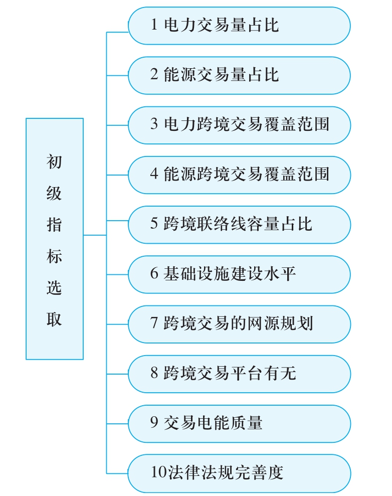 (1)自然因素主要包括地理環(huán)境、經(jīng)濟(jì)環(huán)境等客觀條件,自然因素催生了跨境互聯(lián)的發(fā)展,但無(wú)法直接表現(xiàn)出電網(wǎng)的互聯(lián)情況,因此不作為階段區(qū)分的評(píng)定標(biāo)準(zhǔn),在指標(biāo)的初級(jí)選取中舍棄自然環(huán)境因素。