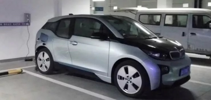 圖:北京雙清大廈的電動汽車自帶充電器充電