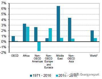 2016年終端能源消費(fèi)量的增長(zhǎng)也出現(xiàn)在經(jīng)合組織的其他區(qū)域,只是速率更低,大約為0.5%(如圖25所示)。