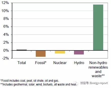 2016年,由于氣象條件和更寒冷的環(huán)境,居民部門的能源消耗的增長(zhǎng)主要集中在北歐和歐洲大陸,芬蘭居民部門能源消費(fèi)同比增長(zhǎng)8%,捷克、德國(guó)和法國(guó)同比增長(zhǎng)8%,瑞典和瑞士和其他國(guó)家同比增長(zhǎng)4%。
