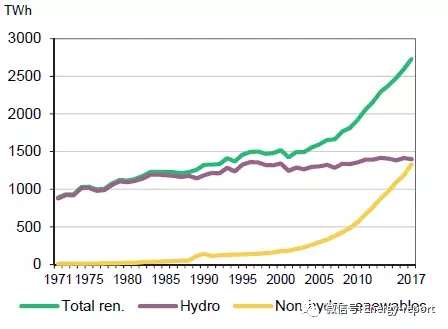 圖22 1971~2017年經(jīng)合組織國(guó)家可再生能源發(fā)電情況
