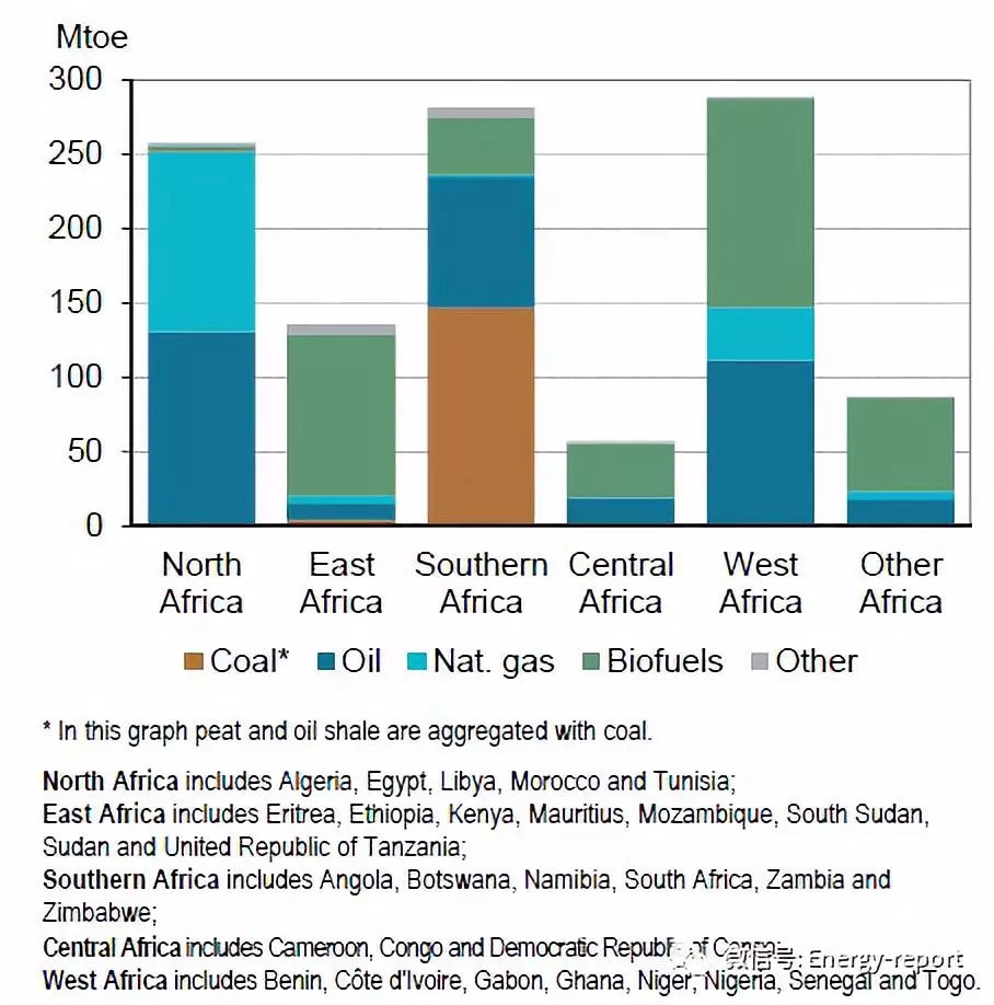 2016年,非洲能源生產(chǎn)占比與1971年的7.8%相似,為8.0%。非洲能源生產(chǎn)主要由生物質(zhì)燃料和廢棄物、石油、天然氣以及煤炭主導(dǎo),其占比分別為35%、34%、15%、14%。非洲在全球一次能源供應(yīng)總量中的占比從1971年的3.5%上升至2016年的5.9%;盡管許多非洲國(guó)家依賴化石燃料的進(jìn)口,但是該區(qū)域能夠?qū)崿F(xiàn)能源自給,并且還能實(shí)現(xiàn)煤炭、天然氣和原油的凈出口。