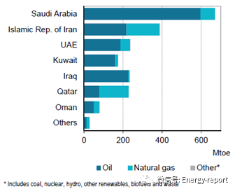 圖53 2016年中東地區(qū)一次能源供應(yīng)總量 按燃料劃分