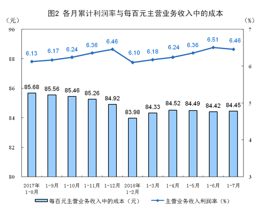 1-7月份,規(guī)模以上工業(yè)企業(yè)實(shí)現(xiàn)主營業(yè)務(wù)收入60.5萬億元,同比增長9.9%;發(fā)生主營業(yè)務(wù)成本51.1萬億元,增長9.5%;主營業(yè)務(wù)收入利潤率為6.46%,同比提高0.4個(gè)百分點(diǎn)。