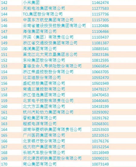 據(jù)了解,此次是中國企業(yè)聯(lián)合會、中國企業(yè)家協(xié)會連續(xù)第17次向社會公開發(fā)布“中國企業(yè)500強”排行榜,連續(xù)第14年發(fā)布中國制造業(yè)企業(yè)500強和中國服務業(yè)企業(yè)500強,并在此基礎上連續(xù)第8年發(fā)布中國跨國公司100大及跨國指數(shù)。“三個500強”榜單涵蓋了我國不同產(chǎn)業(yè)、不同地區(qū)共計1077家大企業(yè),其中制造業(yè)企業(yè)500強和服務業(yè)企業(yè)500強分別有253家和170家入圍中國企業(yè)500強。