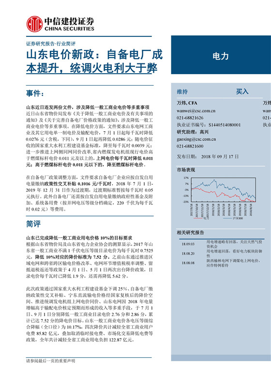 山東電價(jià)新政簡(jiǎn)評(píng):自備電廠成本提升 統(tǒng)調(diào)火電利大于弊