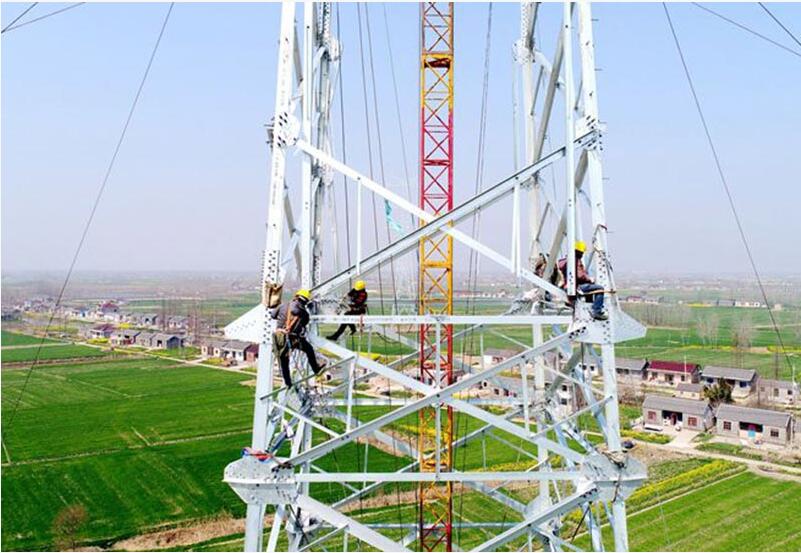 泰州±800千伏換流站至500千伏雙草變輸電工程進入最后組塔階段