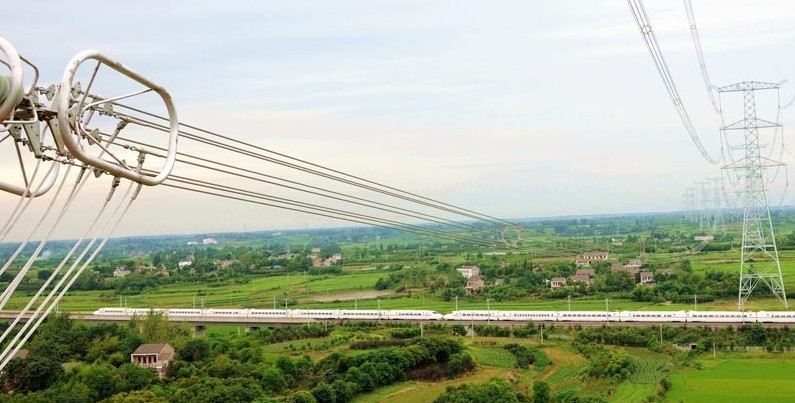 8月4日,在安徽合肥肥西地區(qū),一輛從武漢開往合肥的動車穿越由湖北省送變電工程公司施工的1000千伏皖電東送特高壓淮南至上海一般線路四標段C54至C55號塔之間的輸電線。當日,全線貫通的1000千伏皖電東送特高壓工程淮南至皖南段輸電線路完成4天的帶電測試,為9月全線投產(chǎn)送電創(chuàng)造條件。