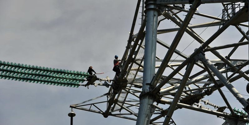 7月9日上午,皖電東送1000千伏特高壓線路浙江58至59標段驗收工程啟動,電力工人頂著高溫登上了一百多米高的鐵塔,通過高空走線的方式,對該特高壓線路進行驗收。 據(jù)悉,1000千伏皖電東送淮南至上海特高壓交流