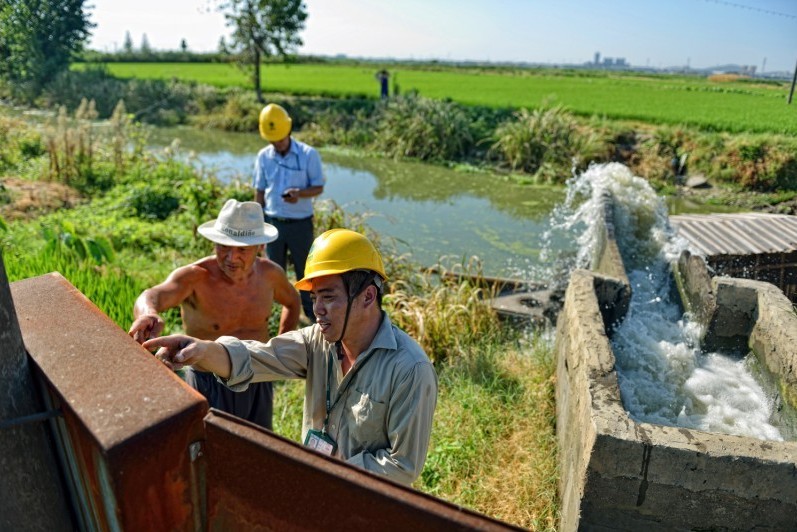 8月16日,國網(wǎng)浙江慈溪市供電公司的錢海軍共產(chǎn)黨員服務(wù)隊(duì)頂著酷暑來到該市橋頭鎮(zhèn)王家埭村,深入田間地頭,為農(nóng)戶的灌溉設(shè)施安裝電表、檢修線路,該鎮(zhèn)利用流動(dòng)機(jī)埠,就近從河道中抽水為近萬畝的田間作物“解渴”。