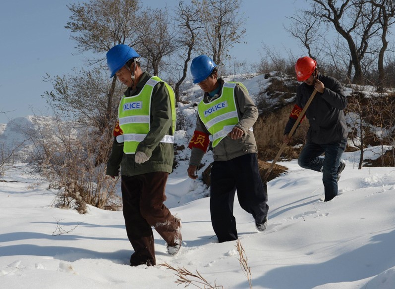 跟他們聊得正是起勁,記者回頭一看,只見(jiàn)三位群眾護(hù)員拿著鐵鍬邊清理積雪,邊往山上爬。不遠(yuǎn)處,一座500千伏線路的鐵塔,正在閃閃發(fā)光。他們告訴記者,今天是十八召開(kāi)的第一天,屬于特殊時(shí)段,每天要不間斷的巡查,遇有危害鐵塔和線路情況馬上就得向電力部門(mén)報(bào)告。