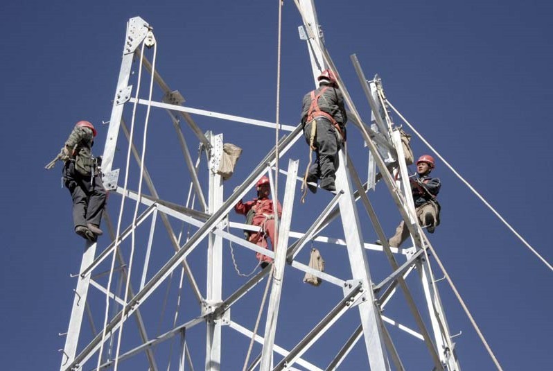 小雪節(jié)氣將至,青海高原晝夜溫差增大,積水成冰。11月19日,青海海東供電公司加快110千伏向互線建設(shè)進(jìn)度,確保線路按時投入運行。110千伏向威線全長5.5千米、鐵塔27基,線路建成后將為全國唯一的土族自治縣—青海互助土族自治縣提供充足的電力能源供應(yīng),推動地區(qū)社會經(jīng)濟發(fā)展。圖為施工人員正在山坡上組立鐵塔。