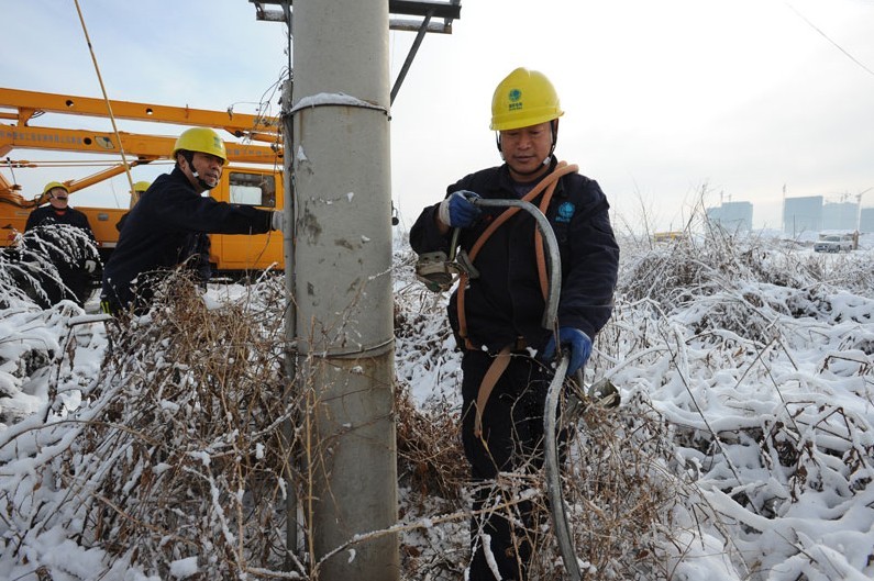 鞍山供電公司6名一線工作人員在市郊10千伏魏家屯線8號變壓器臺處,緊急處理因?yàn)楸┭?dǎo)致的短路事故。據(jù)了解,12月3日鞍山地區(qū)電網(wǎng)受到暴雪災(zāi)害侵襲,鞍山供電公司沉著應(yīng)對,發(fā)揮了“三集五大”后人、財(cái)、物集約優(yōu)勢,組織送、變、配等專業(yè)干部員工,全力排除雪災(zāi)導(dǎo)致的故障,保證了鞍山地區(qū)電網(wǎng)的安全穩(wěn)定運(yùn)行。