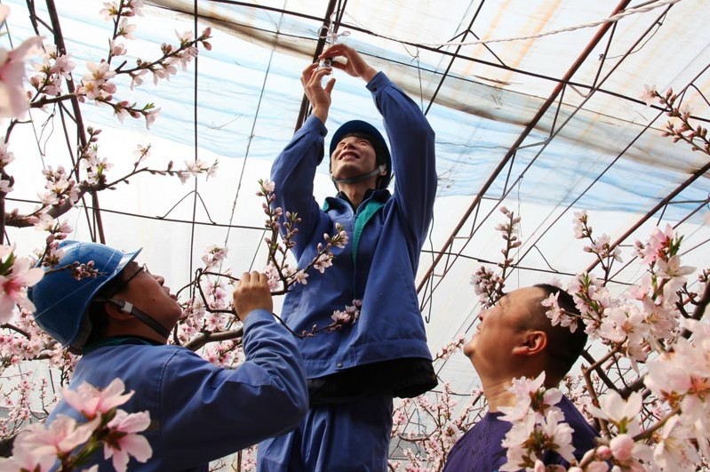 在山東威海里口山大棚蟠桃種植區(qū),威海供電公司作業(yè)人員周軍濤、張凱祥在為劉新洲父子種植的蟠桃大棚加裝臨時(shí)照明線路并對(duì)其他用電設(shè)備進(jìn)行了排查。  里口山國(guó)家級(jí)森林公園,特產(chǎn)水果豐富,近幾年,果農(nóng)們擴(kuò)