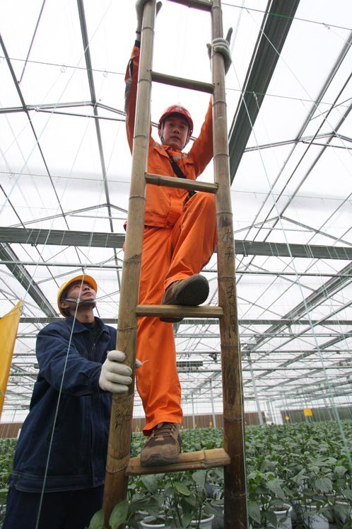 蒼山供電公司的工作人員來(lái)到代村社區(qū)吳女士家的現(xiàn)代化家庭農(nóng)場(chǎng),協(xié)助該農(nóng)場(chǎng)架設(shè)供電線路、安裝電氣設(shè)備?! ?jù)悉,山東省蒼山縣將于4月12日舉辦首屆中國(guó)蔬菜產(chǎn)業(yè)博覽會(huì),吳女士家的現(xiàn)代化農(nóng)場(chǎng)將作為科技有機(jī)