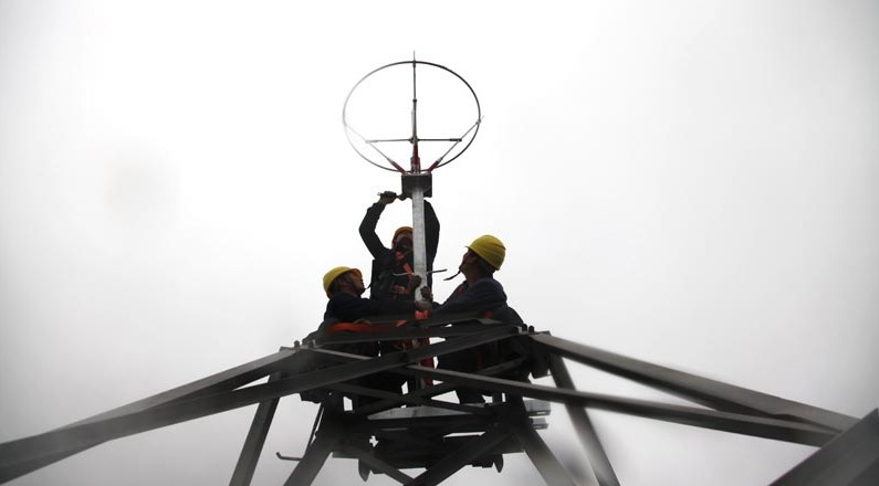 安徽電力職工對特高壓±800千伏復奉直流輸電線路開展春季檢修,為電力大動脈迎峰度夏做好準備。圖為3月20日,安徽送變電公司員工在宣城金壩鄉(xiāng)三合村特高壓±800千伏直流復奉線3104 鐵塔上進行檢修