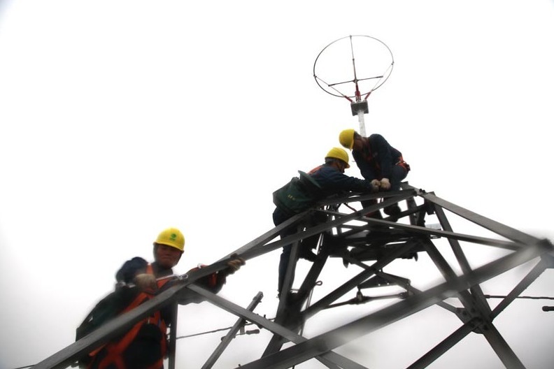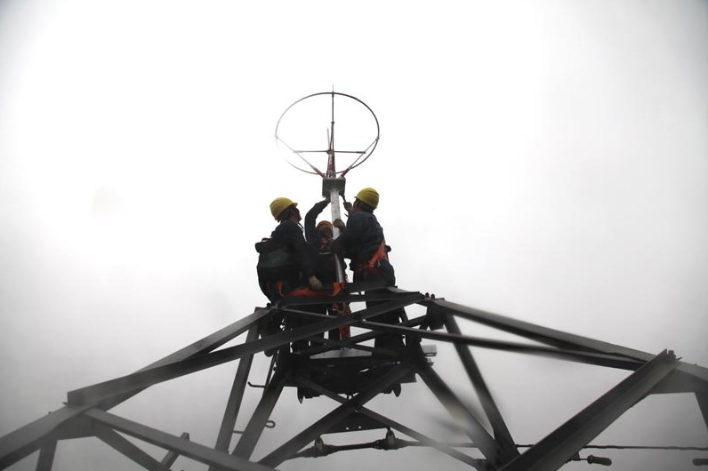 安徽電力職工對特高壓±800千伏復奉直流輸電線路開展春季檢修,為電力大動脈迎峰度夏做好準備。圖為3月20日,安徽送變電公司員工在宣城金壩鄉(xiāng)三合村特高壓±800千伏直流復奉線3104#鐵塔上進行檢修。