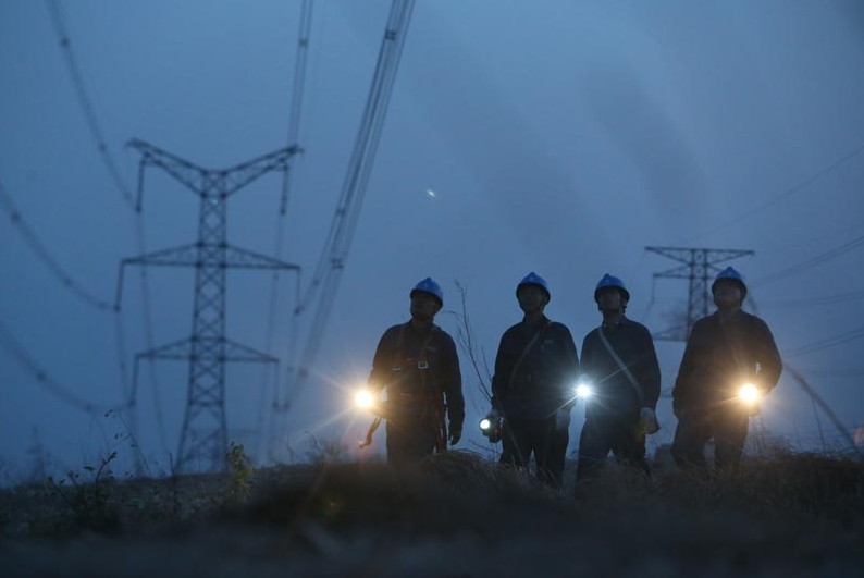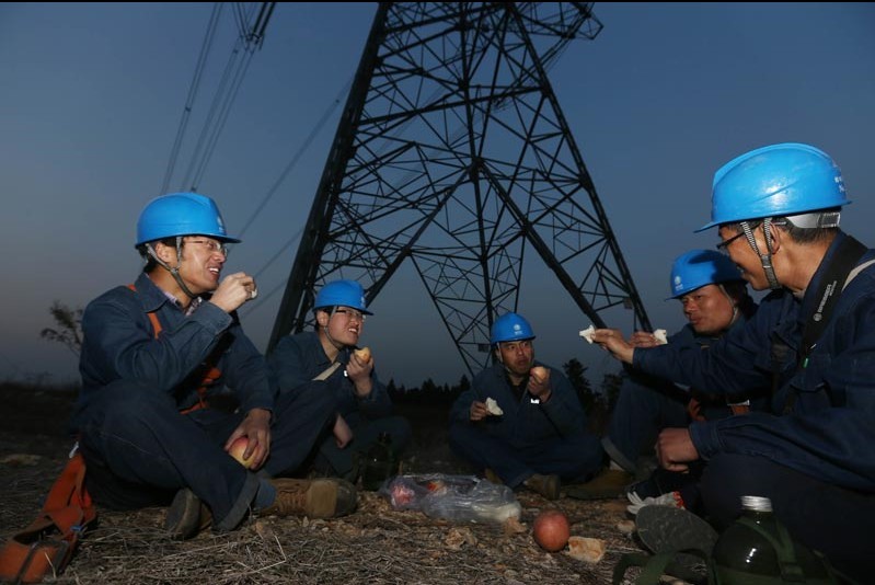 4月10日下午記者跟隨他們上山巡視電力線路,僅僅走了3基鐵塔,記者就滿頭大汗。當天要他們4人巡查16基塔,大約要走山路15、6公里。傍晚19點天逐漸黑了下來,當甘正功和同事來到一基鐵塔附近,他們將手電筒向30多米的鐵塔上方照射,兩束亮光在耐張桿上不斷移動,又停留在鐵塔與線路之間的瓷瓶串、金具、防震錘等重要部位。甘正功介紹說,“我手中的巡線手杖,白天它是登山杖,晚上它就成了打狗棒了,呵呵。巡線人員除了隨身攜帶照相機、望遠鏡、扳手、手電筒、巡線手杖、筆記本等常用工具外,還帶著一把鐮刀,它既能砍路上的雜草,又能防狗、蛇、野豬等危險。晚上21點45分,工程車顛簸著陸續(xù)接上完成夜巡的工作人員開始返回。車上,老甘脫下安全帽不停地擦著汗,說:“明天我們安排的巡線點更遠,可能要比今天還晚一個小時。” 夜色深沉,縱橫交錯的電網伸向遠方,為人們帶來光明,巡線工甘正功和他的同事們用執(zhí)著和堅守默默守護著千家萬戶的光明。