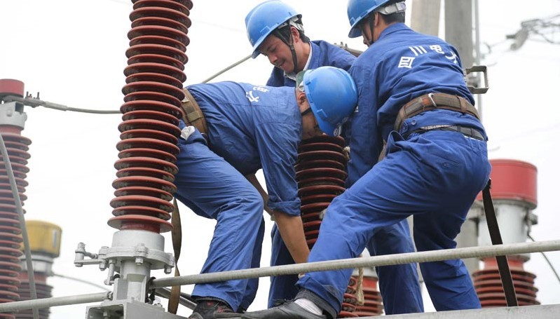 4月22日上午,四川成都電業(yè)局檢修公司檢修人員在110千伏金花變電站進行設(shè)備檢修。在地震中,金花變電站主變移位,部分線路絕緣子斷裂?! ∽髡撸豪顕蕖 碓矗骸秶译娋W(wǎng)報》