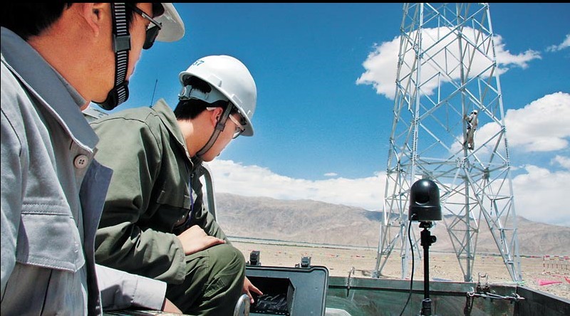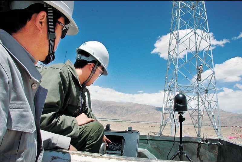 施工隊(duì)員很快做好安全措施,登塔緊固螺絲。周長(zhǎng)春密切監(jiān)控塔上人員的一舉一動(dòng)。他說(shuō):“高原氣候無(wú)常,說(shuō)變天就變天。我參加過(guò)青藏聯(lián)網(wǎng)工程建設(shè),但我所帶的施工隊(duì)員沒(méi)有高海拔作業(yè)經(jīng)驗(yàn),我經(jīng)常將經(jīng)驗(yàn)傳授給他們,讓他們更好地注意安全。”