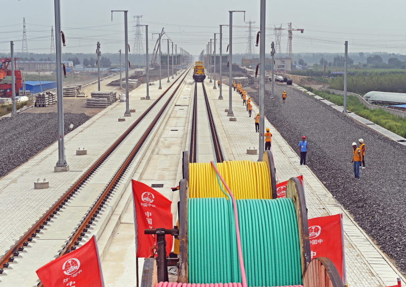 7月18日,中鐵電氣化局工程技術(shù)人員在敷設(shè)電力高壓電纜。