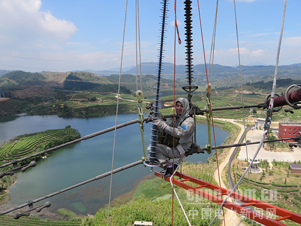 中電新聞網(wǎng)訊 通訊員 陳蒸 陳德鈞 林信恩 報(bào)道 7月4日,福建福州供電公司輸電運(yùn)檢室?guī)щ娮鳂I(yè)班工作人員冒著高溫在連江帶電完成220千伏中口線34號(hào)桿塔下相受損合成絕緣子的更換工作,消除了線路隱患,保障了該線路在迎峰度夏期間的安全穩(wěn)定運(yùn)行。