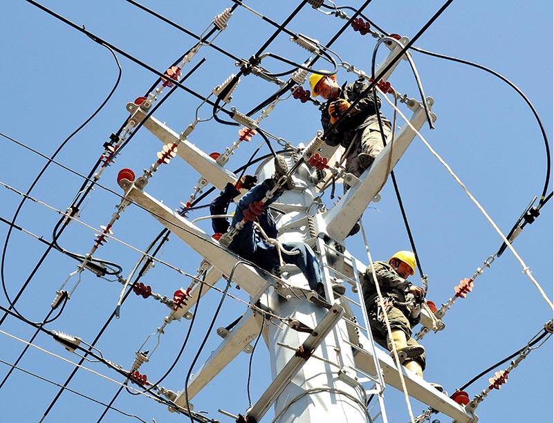 黑龍江省雙鴨山寶清縣城區(qū)10千伏百盟專線并網(wǎng)運行,為招商引資企業(yè)百盟集團的二期建設(shè)和未來發(fā)展提供電力支撐。圖為雙鴨山供電公司員工正在聯(lián)接過引線。