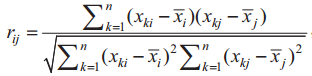 2)計算初始矩陣的相關系數(shù)矩陣,其方程如下: