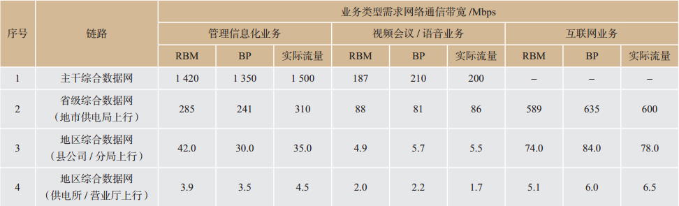 表1 通信網(wǎng)絡帶寬需求預測結果Tab.1 The prediction results of electric power communication network requirement