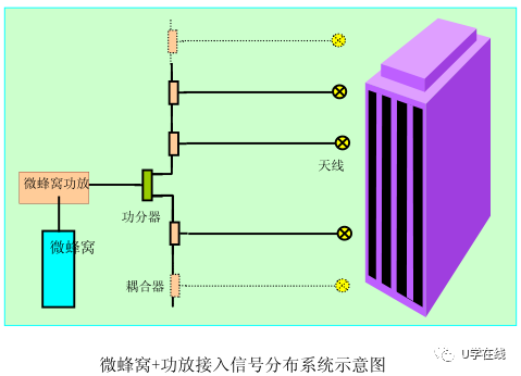 是以微蜂窩基站作為信號分布系統(tǒng)的信號源。由于微蜂窩本身功率較小,只適用于較小面積的室內覆蓋,若要實現(xiàn)較大區(qū)域的覆蓋,就必須增加微蜂窩功放。與宏蜂窩相比微蜂窩成本較低、對環(huán)境要求不高、施工方便等,所以微蜂窩作信號源使用也較為廣泛。