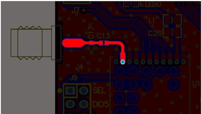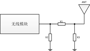 X1,X2,X3都是電抗元件,如果天線是標(biāo)準(zhǔn)的50歐姆阻抗,那么X2,X3可以不焊接,X1接220PF電容或者0歐姆電阻。在PCB設(shè)計(jì)時(shí),這三個(gè)器件已經(jīng)盡量靠近模塊的射頻輸出腳,并且連接的傳輸線短且直。匹配元件的周圍1.5mm區(qū)域內(nèi)不要鋪地,以減少寄生參數(shù)對(duì)匹配電路的影響。