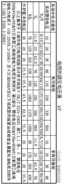額定電壓是電纜及附件設計和電性試驗用的基準電壓,用U0/U表示