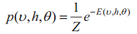 RBM隨機(jī)模型的能量函數(shù)和概率分布函數(shù)可表示為: