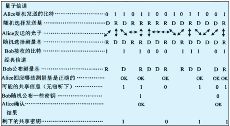 BB84協(xié)議的過程如圖1所示,以單光子偏振編碼為例介紹BB84協(xié)議的實施過程。