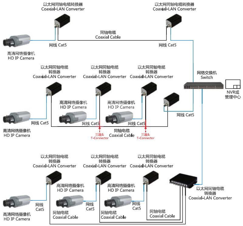 本方案基于業(yè)界最先進(jìn)的云間寬帶載波通信技術(shù),可以重用模擬系統(tǒng)已經(jīng)布好的模擬視頻線或雙絞線來(lái)傳輸以太網(wǎng)信號(hào),從而實(shí)現(xiàn)“無(wú)需重新布線,即可升級(jí)到數(shù)字高清”。