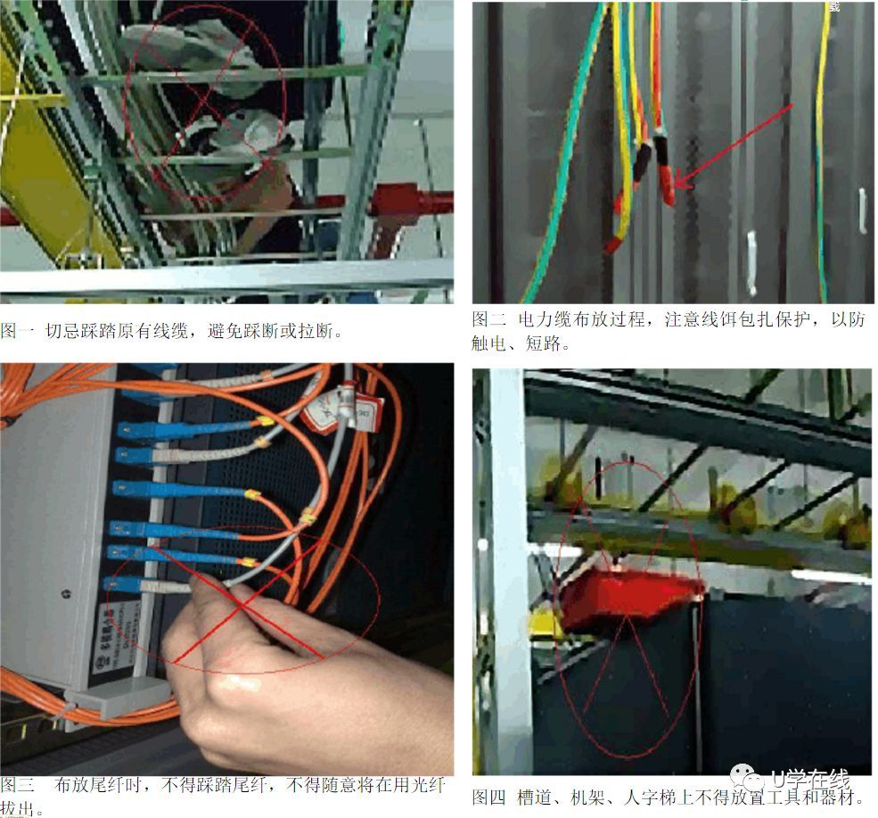 3、攀高必須用人字梯,盡量避免觸碰和踩踏現(xiàn)有線(xiàn)纜。