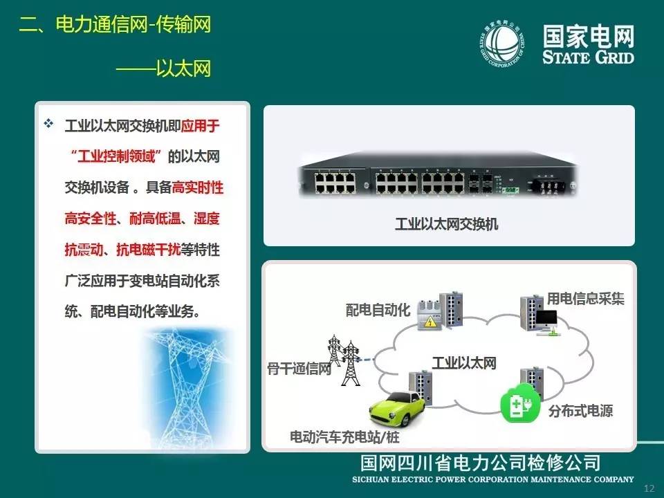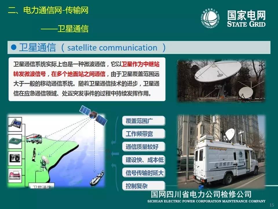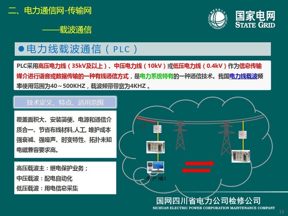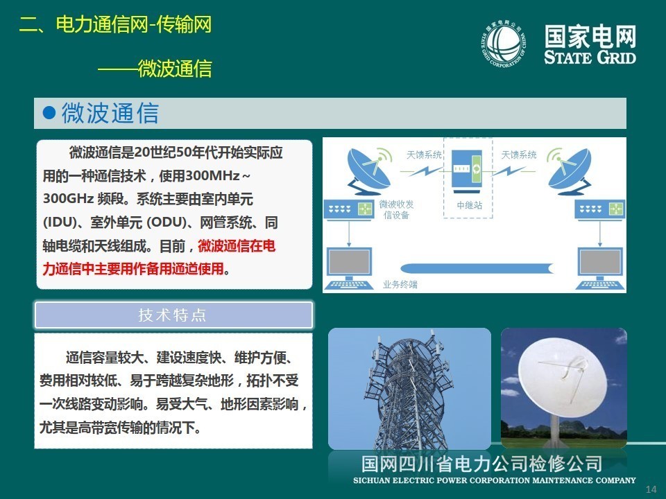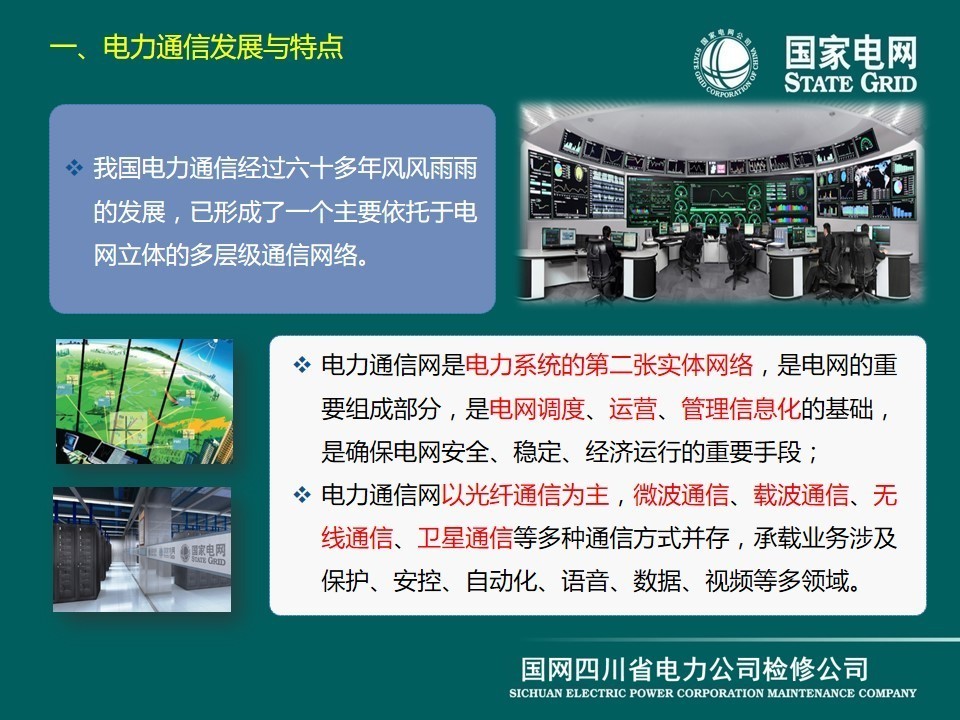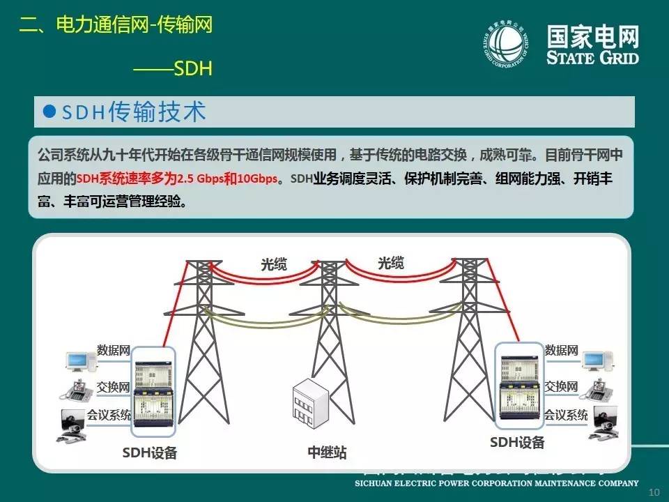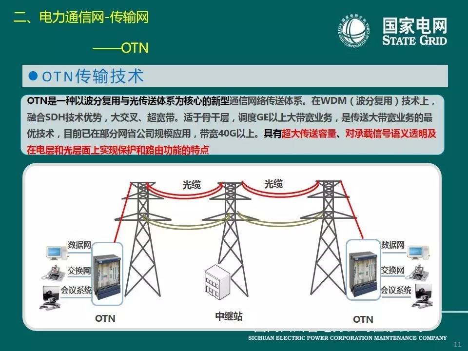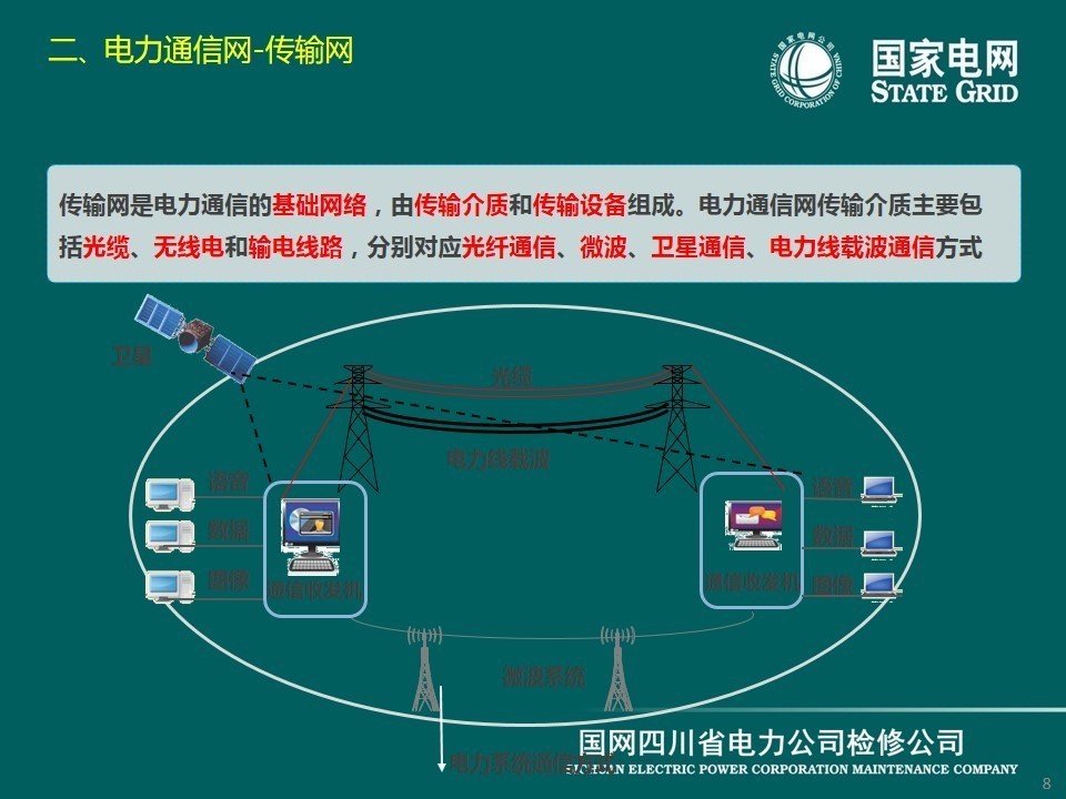 現(xiàn)在介紹傳輸網(wǎng),它是電力通信的基礎(chǔ)網(wǎng)絡(luò),由傳輸介質(zhì)和傳輸設(shè)備組成。電力通信網(wǎng)傳輸介質(zhì)主要包括光纜、無(wú)線(xiàn)電和輸電線(xiàn)路,分別對(duì)應(yīng)光纖通信、微波、衛(wèi)星通信、電力線(xiàn)載波通信等方式。
