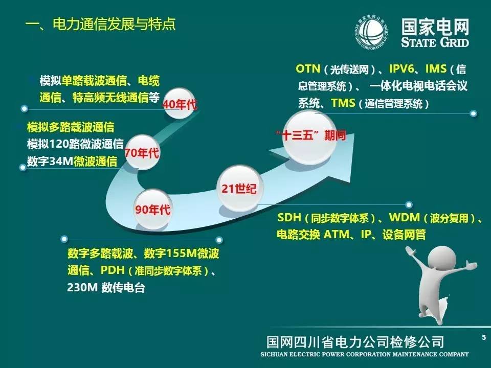 可以看到,從四十年代末建國(guó)后,一直到現(xiàn)在“十三五”期間,電力通信隨著電網(wǎng)一直也在發(fā)展,從最初的模擬電路交換一直到現(xiàn)在的SDH、WDM、OTN。傳輸?shù)乃俾试絹?lái)越高,容量越來(lái)越大。