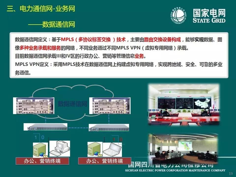 數(shù)據(jù)通信網(wǎng)主要由路由交換設(shè)備構(gòu)成,能夠?qū)崿F(xiàn)數(shù)據(jù)、圖像多種業(yè)務(wù)承載和服務(wù)的網(wǎng)絡(luò),不同業(yè)務(wù)通過(guò)不同MPLS VPN(虛擬專(zhuān)用網(wǎng)絡(luò))技術(shù)承載。目前數(shù)據(jù)通信網(wǎng)承載行政辦公、營(yíng)銷(xiāo)等管理信息業(yè)務(wù)。