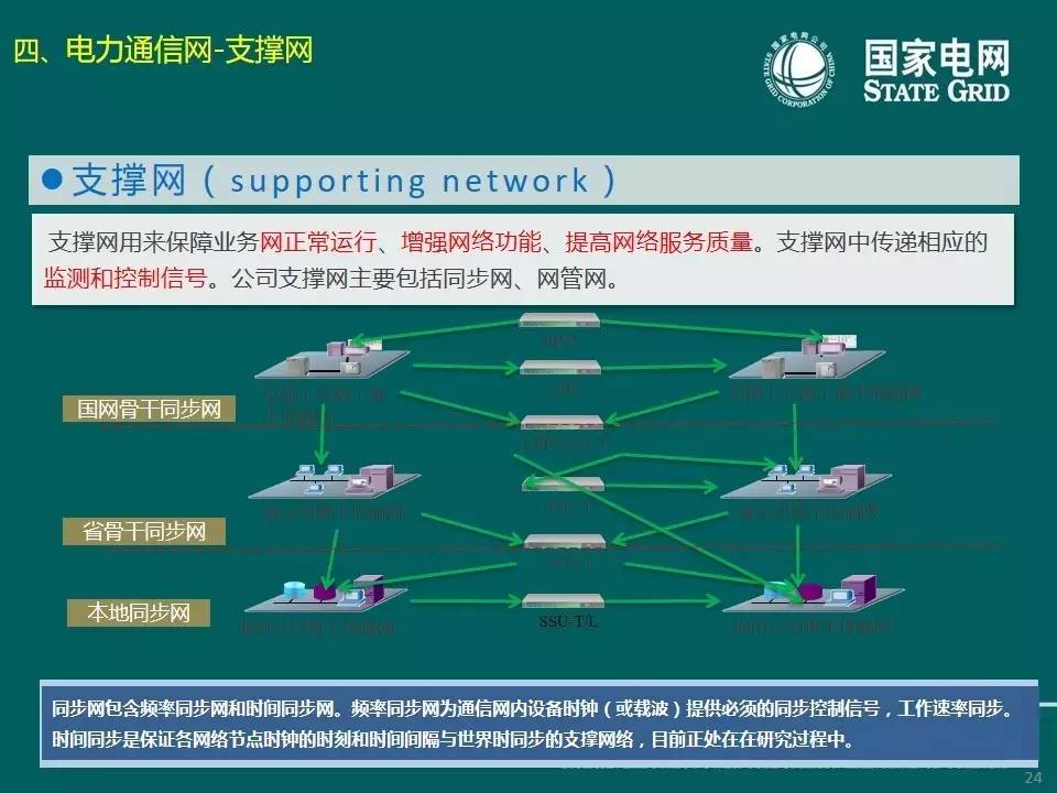 最后一個(gè)部分,支撐網(wǎng):用來(lái)保障業(yè)務(wù)網(wǎng)正常運(yùn)行、增強(qiáng)網(wǎng)絡(luò)功能、提高網(wǎng)絡(luò)服務(wù)質(zhì)量。支撐網(wǎng)中傳遞相應(yīng)的監(jiān)測(cè)和控制信號(hào)。公司支撐網(wǎng)主要包括同步網(wǎng)、網(wǎng)管網(wǎng)。