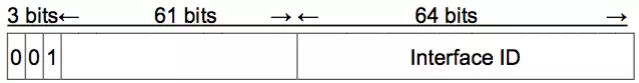 前3 bits為首碼,內(nèi)容固定是001,最后的64 bits 為接口標(biāo)識(shí)(Interface ID)。Interface ID的功能如同 IPv4 的主機(jī)地址(Host ID)。