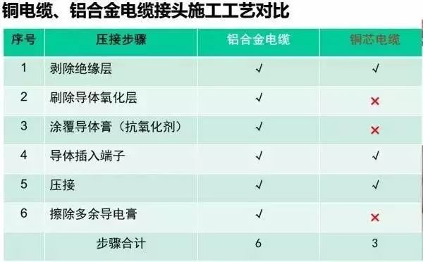 鋁合金電纜接頭工藝比銅電纜多出三個工藝,氧化層的有效去除和涂覆抗氧化劑是關(guān)鍵,國內(nèi)施工水平,質(zhì)量要求參差不齊,留有隱患。而且由于國內(nèi)沒有嚴(yán)格法律責(zé)任賠償體系,最終損失后果實(shí)踐中基本還是用戶自己承擔(dān)。