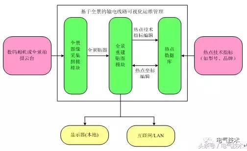 國網(wǎng)江蘇省電力公司徐州供電公司的研究人員張云飛,在2018年第1期《電氣技術(shù)》雜志上撰文,借助于全景技術(shù),用戶僅需通過在輸電線路現(xiàn)場進行一次圖像采集,就能夠獲得一個身臨其境的輸電線路全景的還原現(xiàn)場;對輸電線路進行監(jiān)控時,能夠排除時間和氣象因素的影響,并通過較少的拍攝取景地點來獲得最完整的設(shè)備分布視圖;運維人員可以根據(jù)輸電線路現(xiàn)場情況,在重要設(shè)備位置加入熱點并提供其性能參數(shù),從而幫助運維人員及時定位故障發(fā)生地并輔助制定檢修方案。
